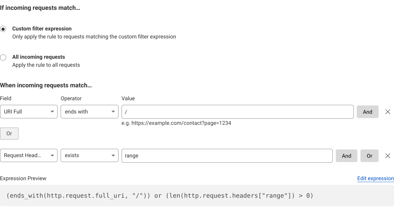 Disabling Cloudflare caching for Range requests